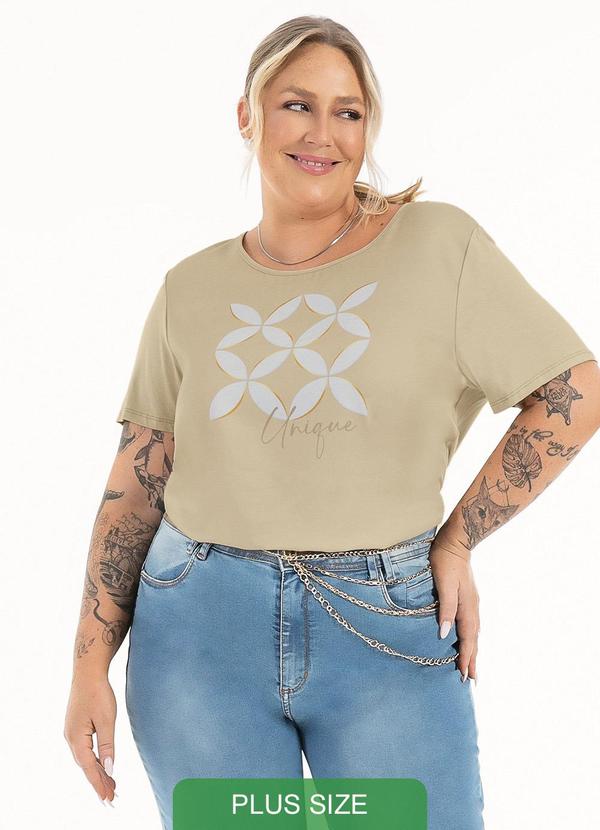 Habana - Blusa Plus Size em Misturinha Bege