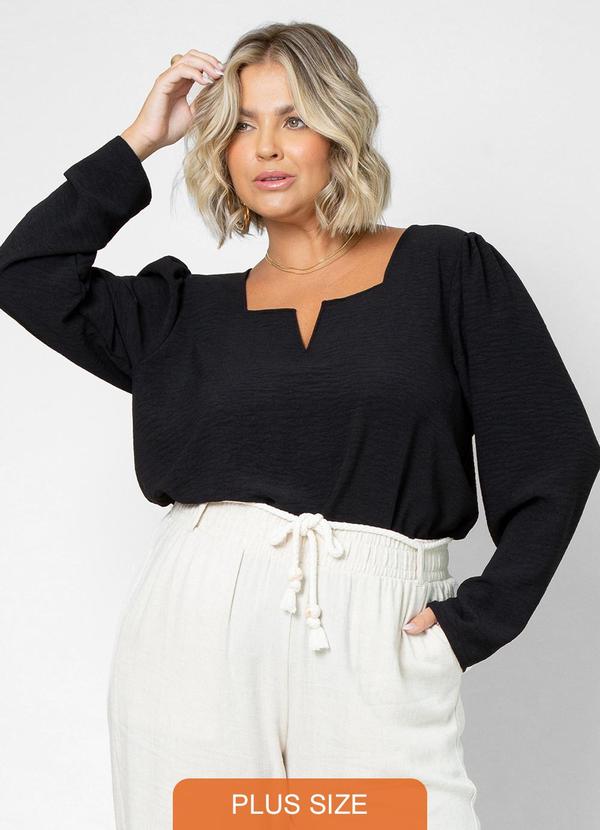Secret Glam - Blusa Plus Size Manga 7/8 Preto