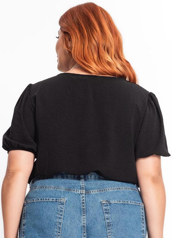 Secret Glam - Blusa Plus Size Mangas Bufantes Preto