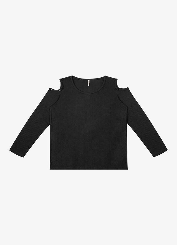 Rovitex - Blusa Plus Size Ribana Canelada Rechsul Preto