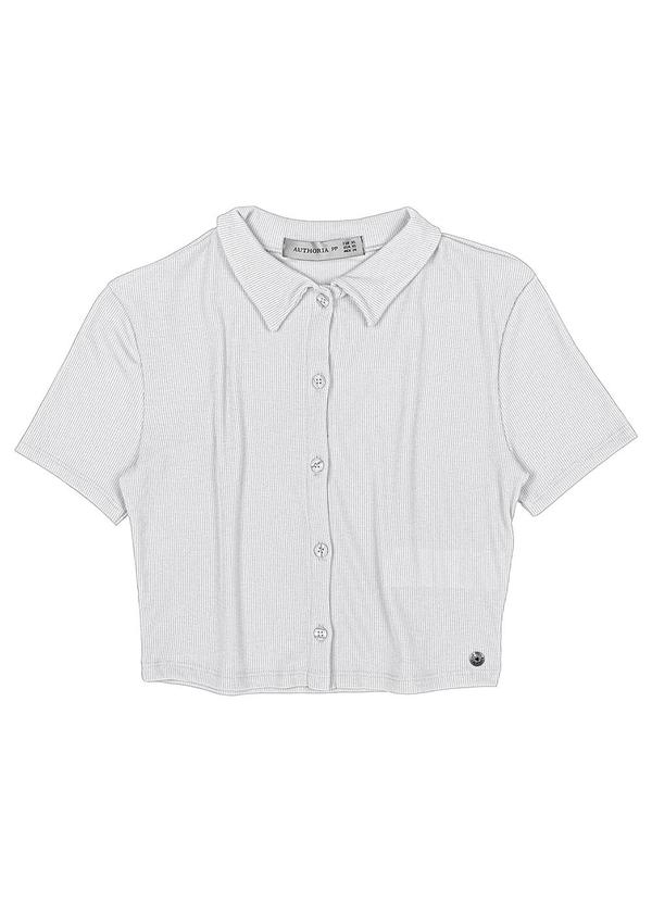 Authoria - Blusa Polo Feminino Manga Curta Canelada Branco