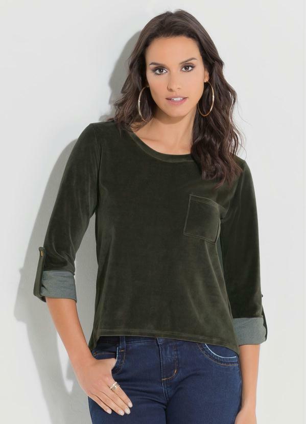 Quintess - Blusa Quintess Verde Mullet com Mangas 3/4