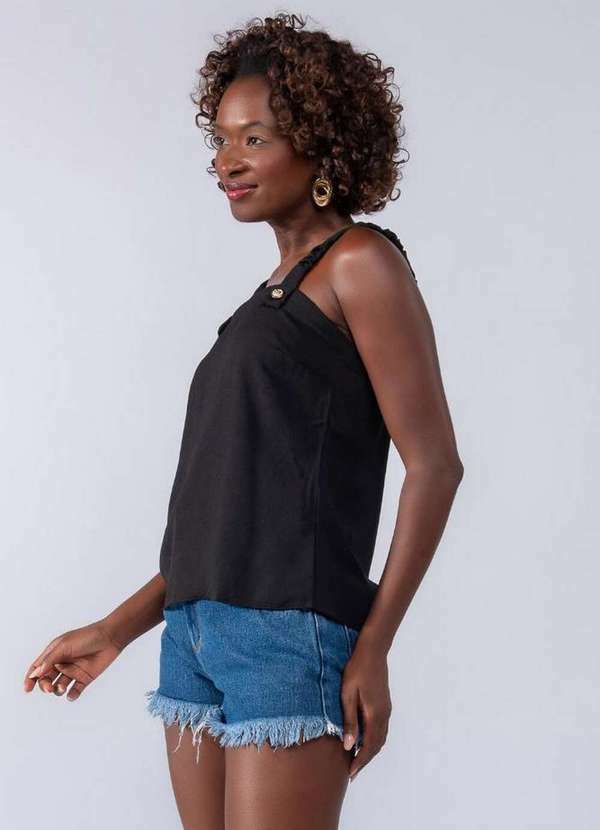 Lamis - Blusa Regata Elastico na Alca Botao Preto