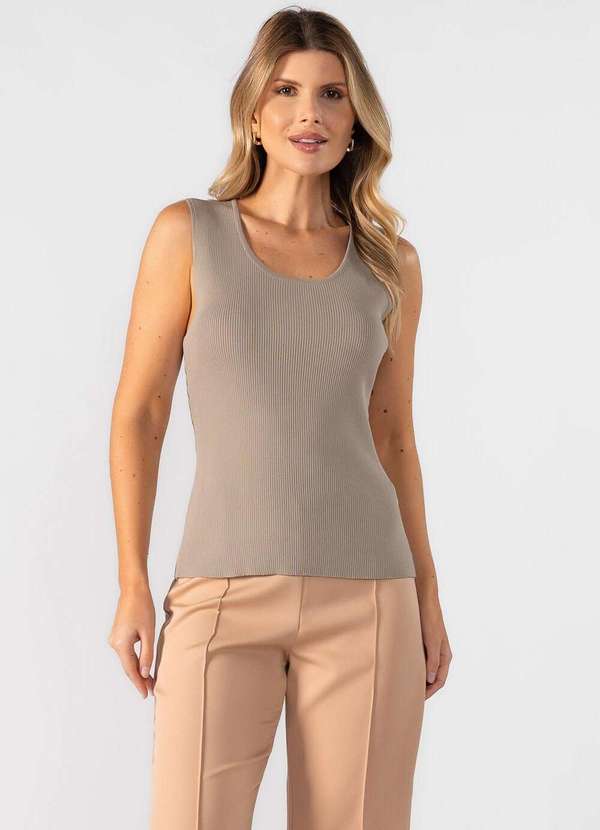 Blusa regata canelada Dica: Usar com calça pantalona e scarpin Composição: 50%viscose 50%poliamida Modelo usa:Tamanho P -Medidas 1,75 de altura | 60kg.