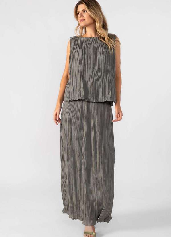 Lamis - Blusa Regata Plissada Cinza