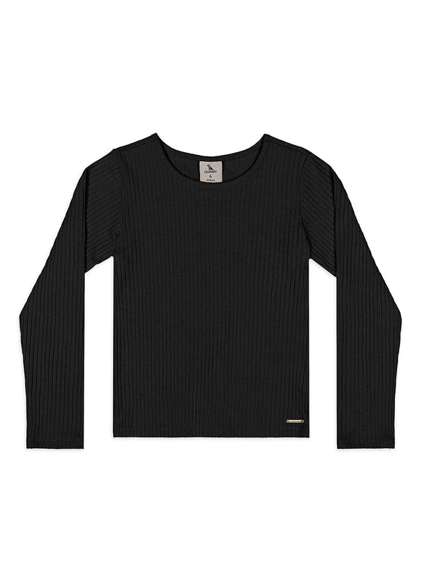 Quimby - Blusa Ribana Canelada Manga Longa Preto