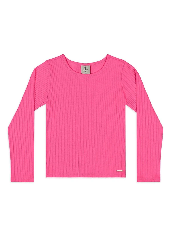 Quimby - Blusa Ribana Canelada Manga Longa Rosa