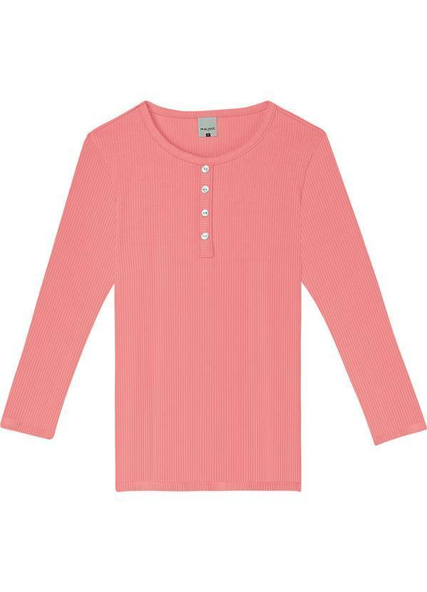 Malwee - Blusa Rosa Canelada com Botões Feminino