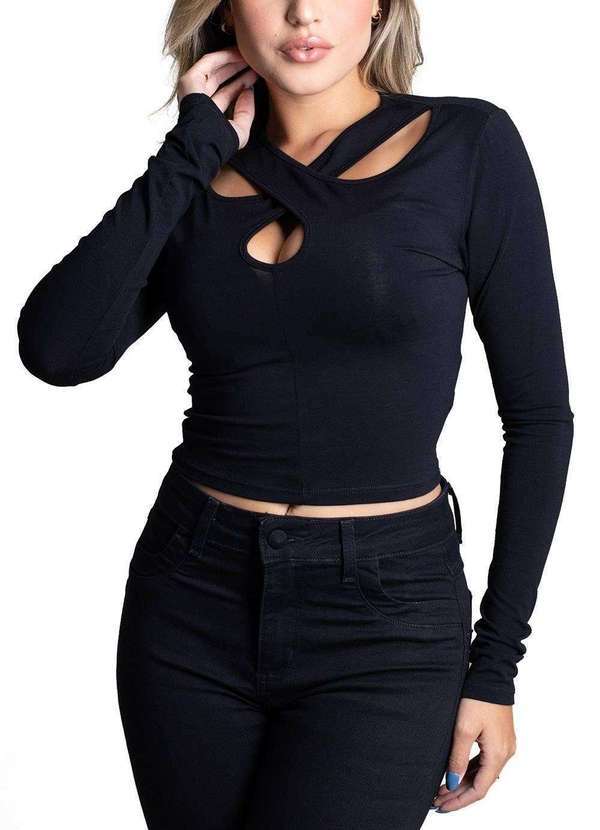 Sawary - Blusa Sawary Manga Longa - 274836 Preto