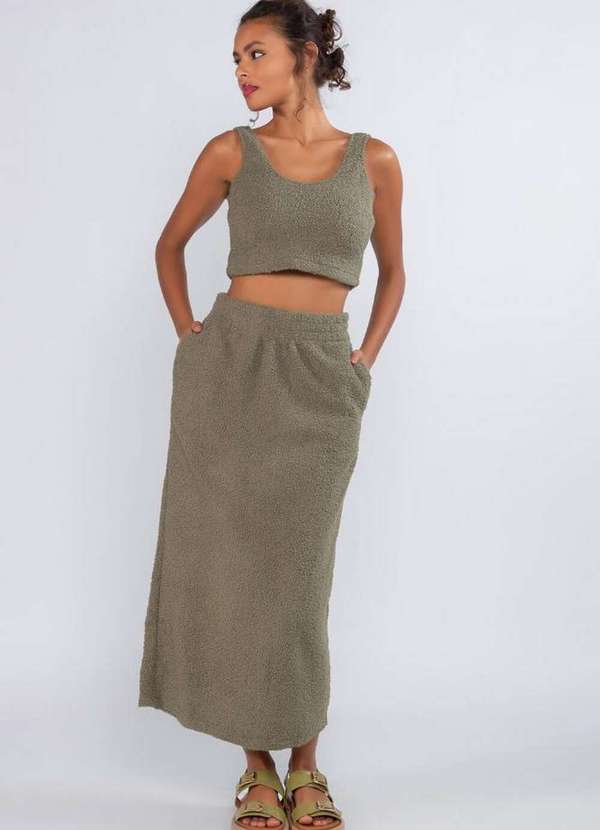 Lamis - Blusa Teddy Cropped sem Mangas Verde