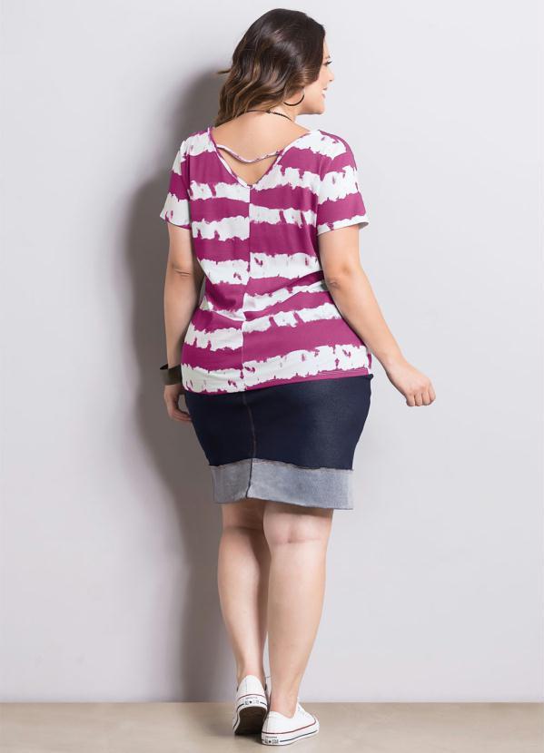 Marguerite - Blusa Tie Dye Pink Manga Curta Plus Size