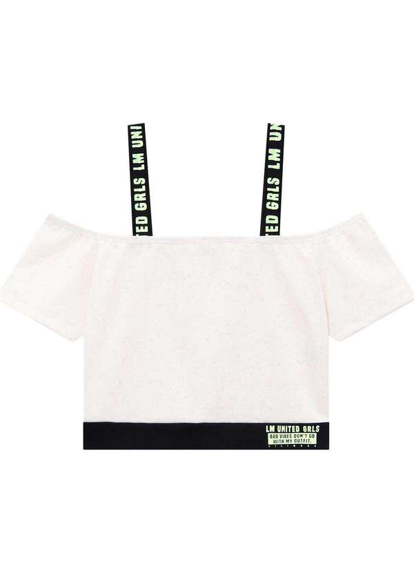 Blusa Top Cropped Alça Branco Lilimoon. Gola: redonda com alças. Manga: curta. Tecido: molevisco 65% poliéster, 26% viscose, 5% linho e 4% elastano. Características: tiras em neon, manga ciganinha super estiloso. Sobre a marca: Perfeita para vestir as crianças com muito estilo e criatividade!