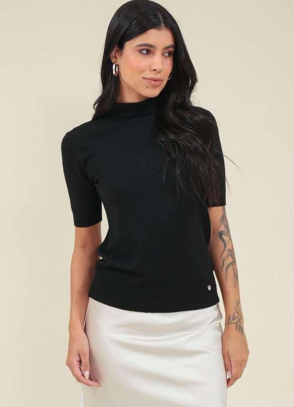 Pop Me - Blusa Tricot Manga Curta Gola Alta Preto