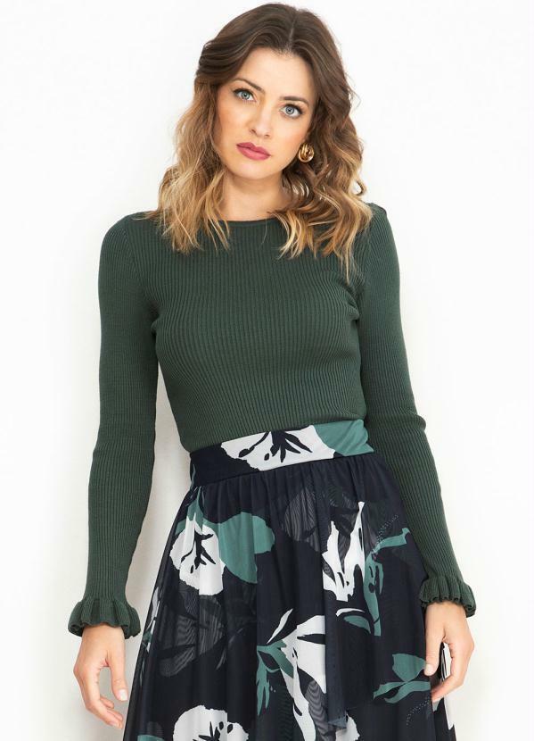 Maria Filó - Blusa Tricot Manga Longa com Babado Verde