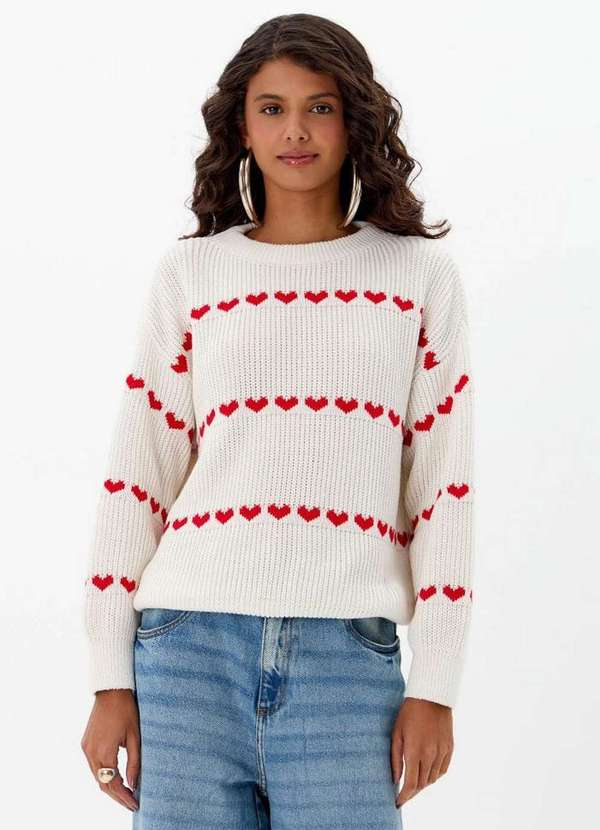 My Favorite - Blusa Tricot Manga Longa Corações A2920