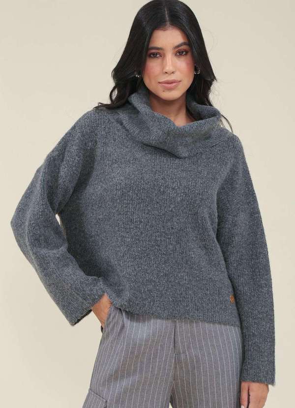 Pop Me - Blusa Tricot Oversized Manga Longa Ampla e Gola Alta Cinza