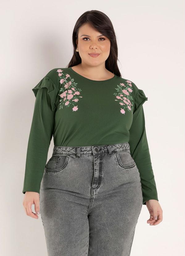 Marguerite - Blusa Verde com Estampa e Babadinhos Plus Size