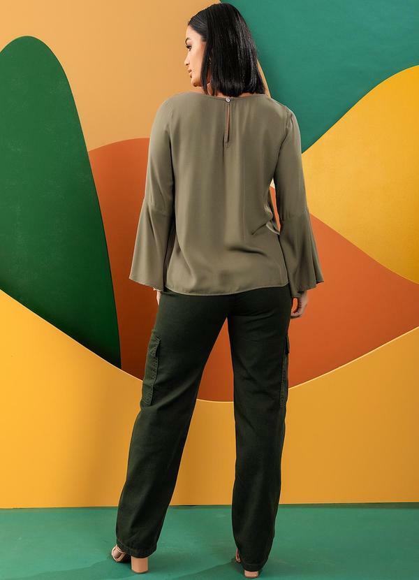 Quintess - Blusa Verde Oliva em Viscose Plana Sarjada