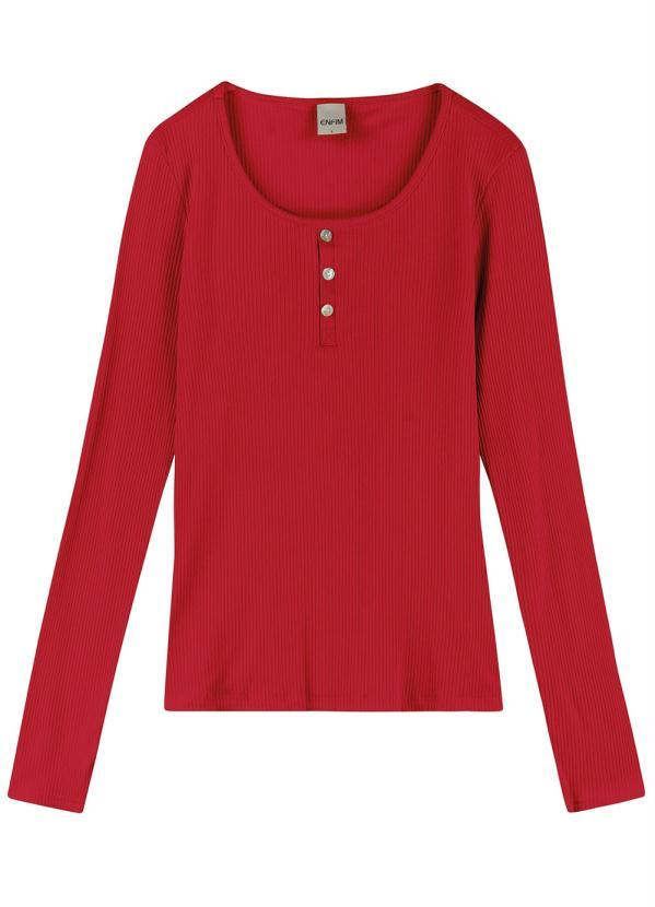 Enfim - Blusa Vermelha Canelada com Botões Feminina