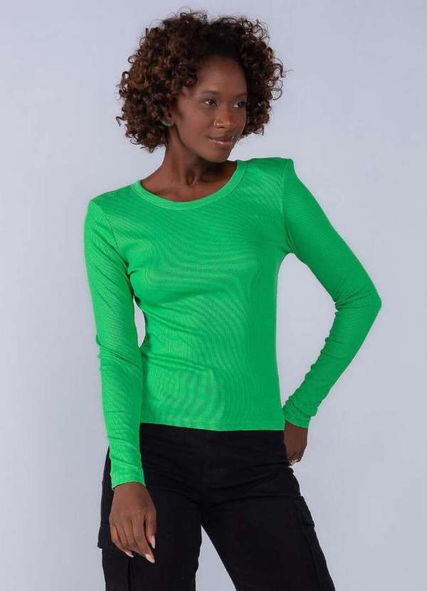 Lamis - Blusa Viscose Manga Longa com Ombreiras Verde