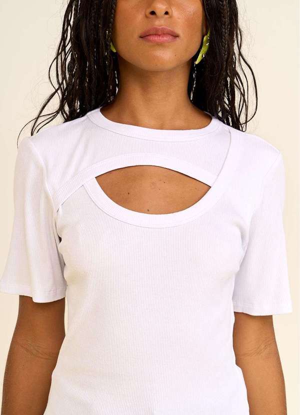 Zinco - Blusa Zinco Ajustada Decote Careca Manga Curta Padrão Branco Branco
