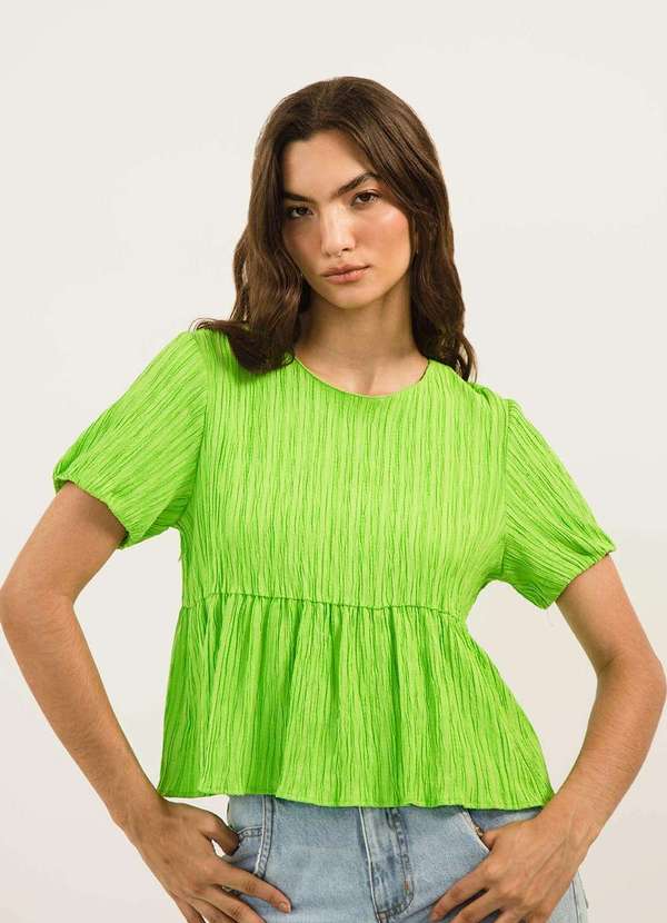 Zinco - Blusa Zinco Decote Redondo Manga Curta Amarração Costas Verde Verde