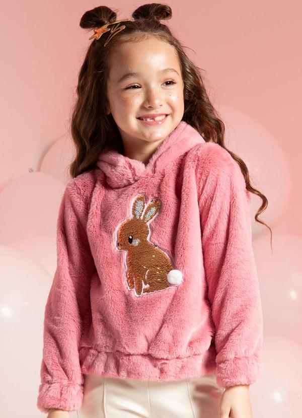 Cativa Kids - Blusão Bordado Lantejoulas Peluciado Rosa