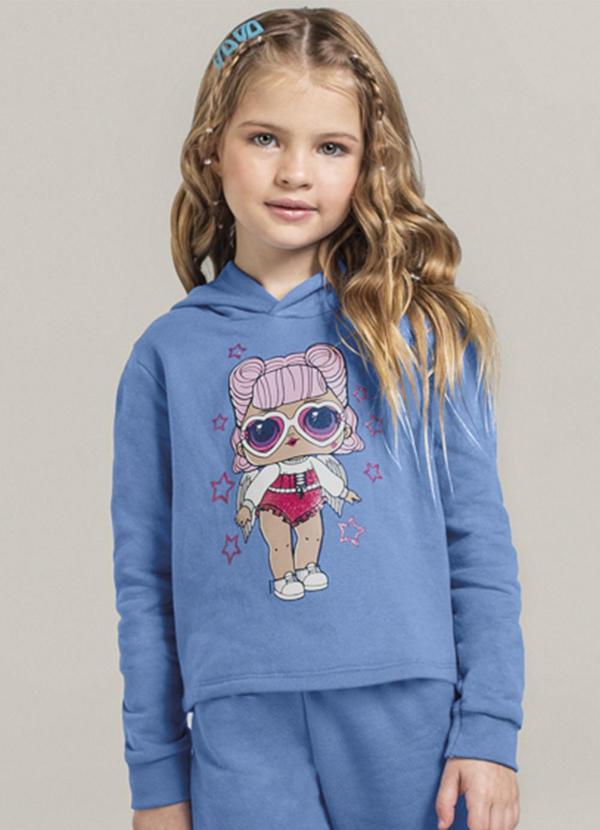 Brandili - Blusão Cropped Infantil Menina Lol Azul