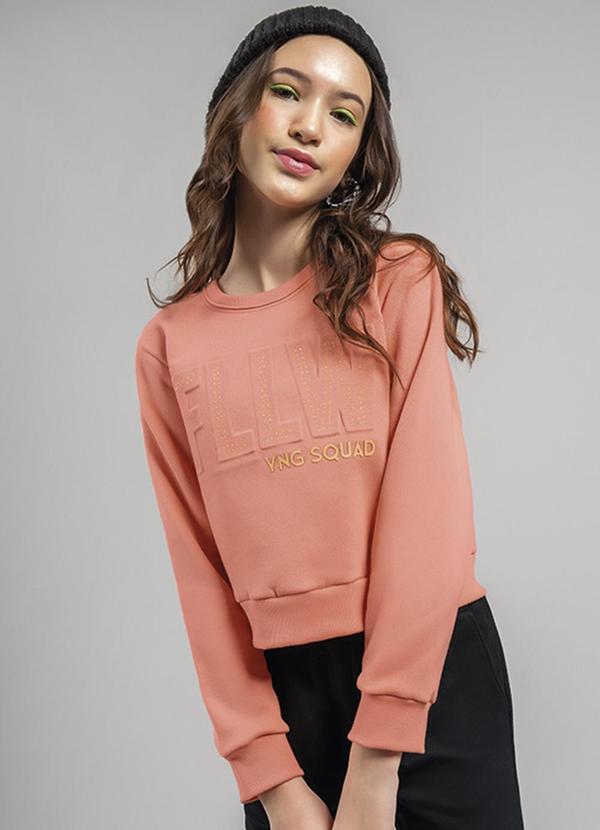 Young Class - Blusão Cropped Teen Menina em Moletom Rosa
