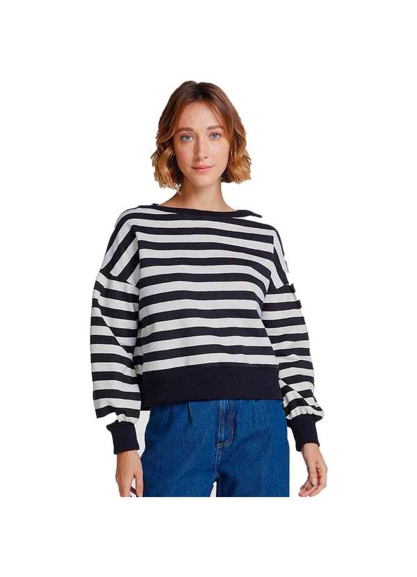 Hering - Blusão de Moletom Feminino Listrado Mangas Bufantes Preto