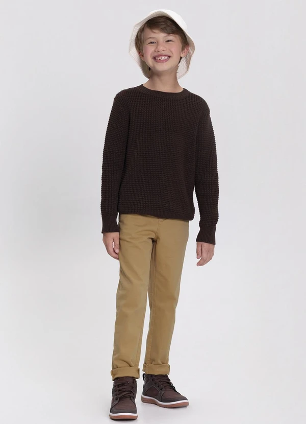 Alakazoo - Blusão de Tricô Menino com Gola Redonda Marrom