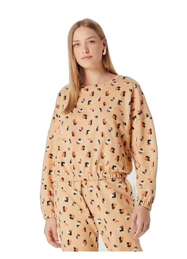 Para mais estilo em seus looks, nosso blusão estampado em moletom de algodão sem pelúcia é uma ótima opção. Com modelagem curta, sem acinturar e decote redondo. Ele possui mangas longas com shape amplo formando franzido nos punhos, além de barra e punhos com elástico embutido. As estampas trazem originalidade à temporada, inspirando shapes com muita personalidade.