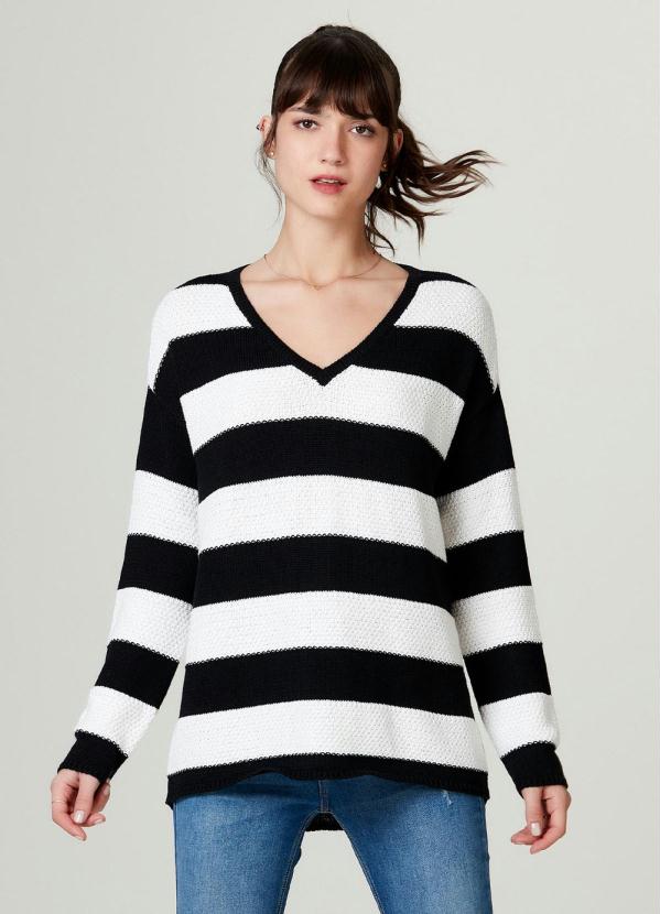Hering - Blusão Feminino em Tricô Fio Tinto Listrado Alongado Preto