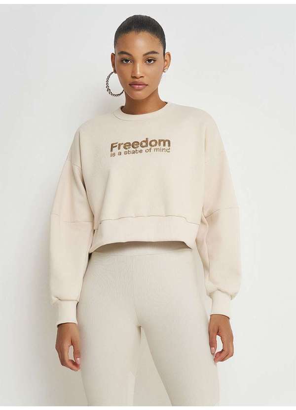Modelagem: Ampla Modelo: Cropped Comprimento da manga: Longa Modelo da manga: Com Punho Detalhe: Bordado Tecido: Malha Composição: 85% Algodão, 15% Poliéster Cor: Bege.