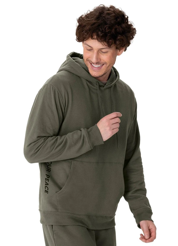Malwee - Blusão Protect Your Peace em Moletom Verde Oliva