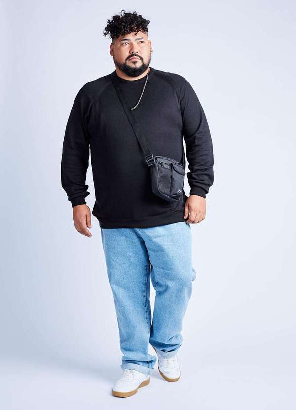 Ótimo para dias mais frios, o blusão masculino plus size preto Gang, elaborado em tecido de algodão, super macio, leve e quentinho. Possui mangas com costuras raglan, bem moderno. A modelagem é super confortável ao vestir, e possui fit mais ajustado e anatômico. Combine com calças jeans ou sarja, tanto básicas ou rasgadas.