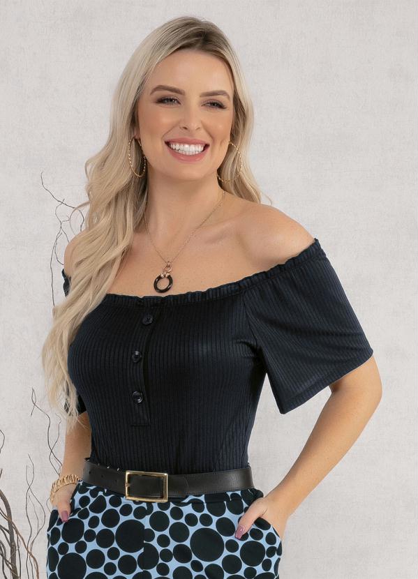 Outlet - Body Ciganinha com Botões Decorativos Preto