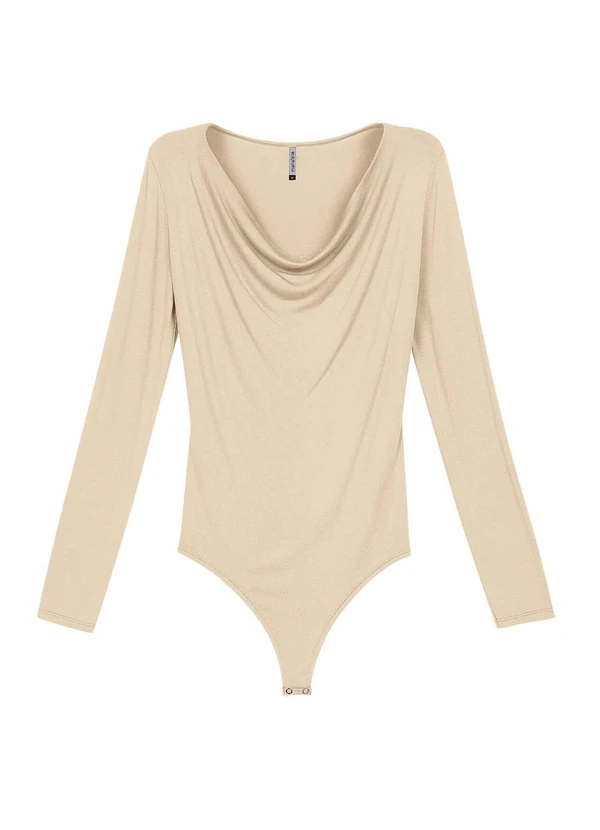 Marialícia - Body Feminino Manga Longa Decote Degagê Bege
