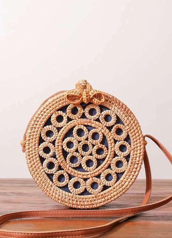 Mellow Brazil - Bolsa de Praia de Rattan Estruturada com Forro - Maldivas Azul