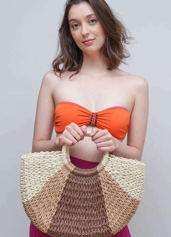 Mellow Brazil - Bolsa de Praia em Palha c/ Alça de Mão e c/ Forro - Cancun Bege