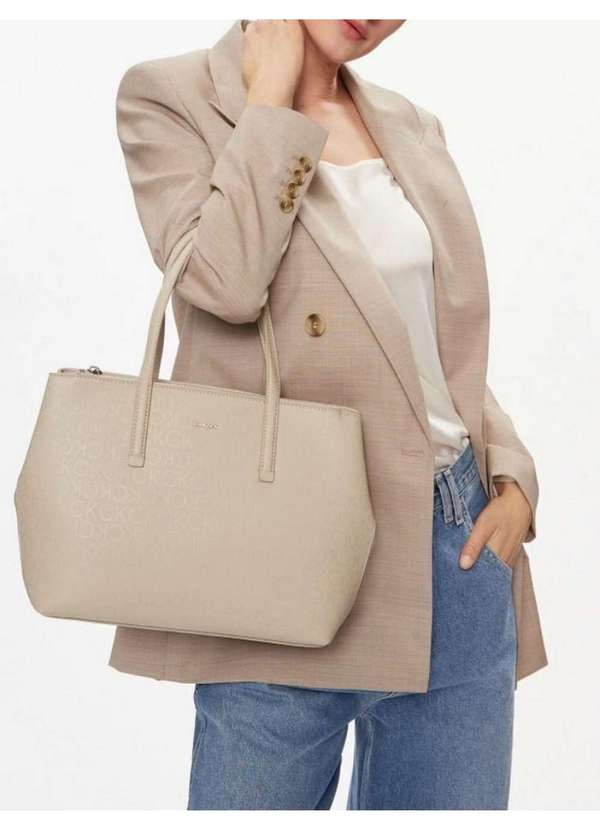 Calvin Klein Jeans - Bolsa Feminina Tote Must Monograma Calvin Klein - Off White Branco
