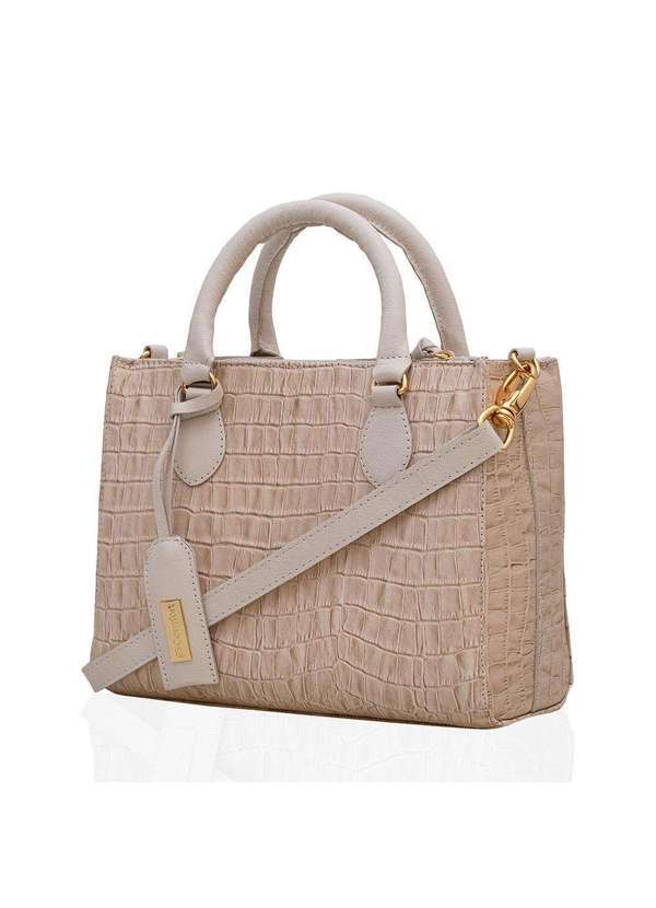 Comfort - Bolsa Tote Feminina Preto Textura Croco com Dupla Alça Comfort Vanilla