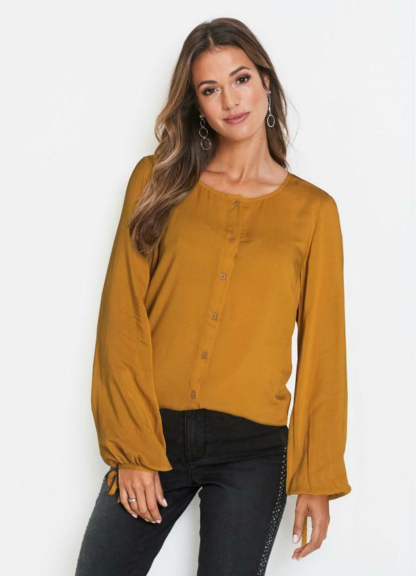 bonprix - Blusa com Amarração Amarelo Mostarda