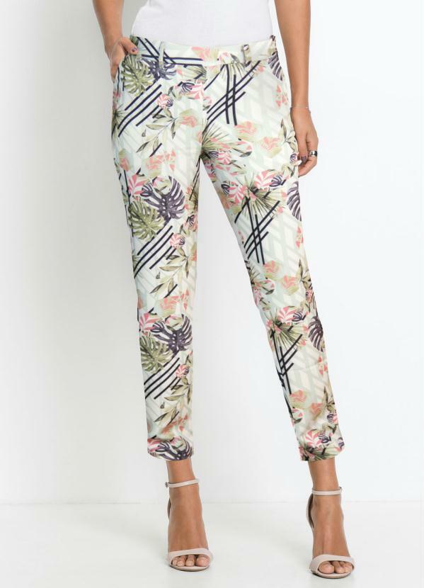 bonprix - Calça Social Alfaiataria Floral Branca