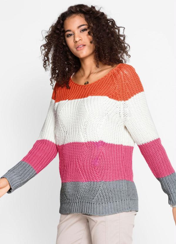 bonprix - Suéter de Tricô Listrado Laranja e Rosa