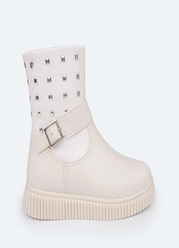 Pampili - Bota Cano Médio Infantil Pampili Candy Glitter e Tachas Nude Nude