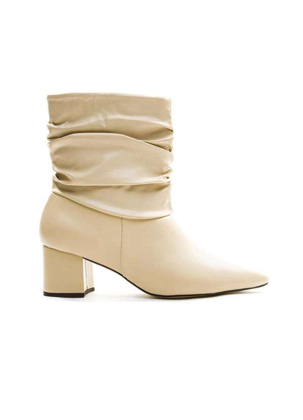 Com um destaque especial para o cano curto enrugado, a bota slouchy Cecconello é ideal para compor looks modernos e atemporais. Este modelo conta com o salto médio bloco e a praticidade do fechamento em zíper na lateral para facilitar o calce. Aproveite! Características Material:Soft ( Sintético ) Cor: Creme Altura do salto:5,5cm Altura do cano:17cm Circunferência: 31,5cm *Medidas proporcionais a numeração 35. Possui alteração conforme o tamanho. .