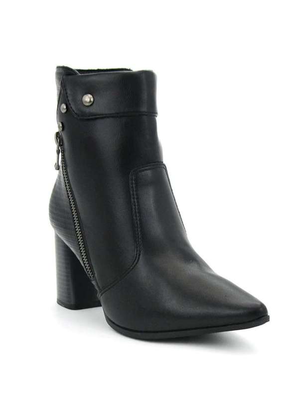A Bota é para aquelas que tem atitude e sofisticação! Garanta looks cheios de personalidade com modelagem de cano curto, esta versão traz salto bloco médio de 8 cm, bico fino e recebe detalhes como o zíper lateral e a textura variada pelo cabedal e a aplicação de tachas, o encontro do estilo com personalidade e a praticidade. Perfeita, né? Garanta já a sua e combine com peças que vão do jeans skinny ao vestido tubinho e várias outras combinações!