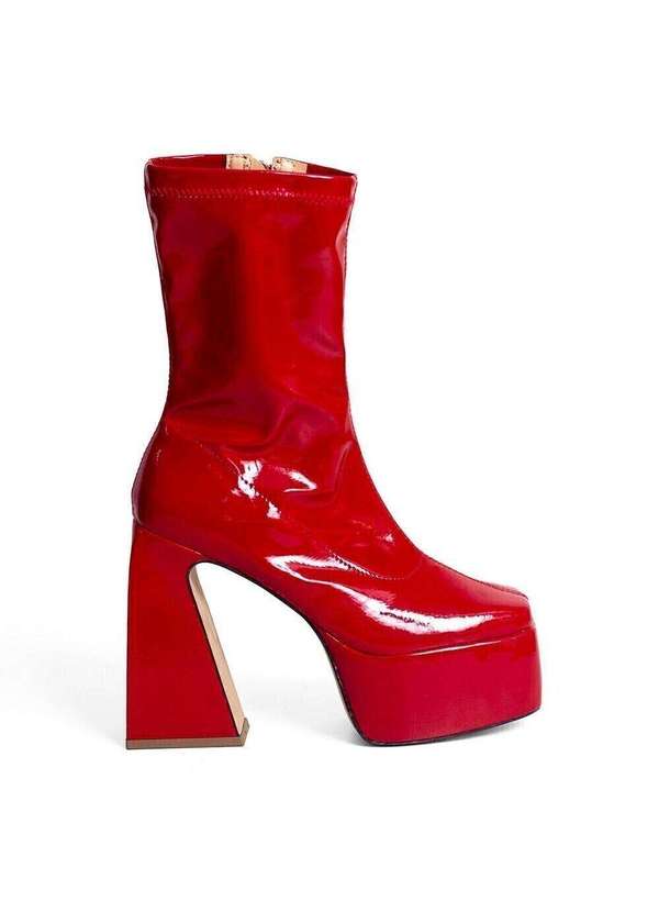 Raphaella Booz - Bota Salto Alto Plataforma Geométrico Verniz Verniz Molhado Stretch Furia