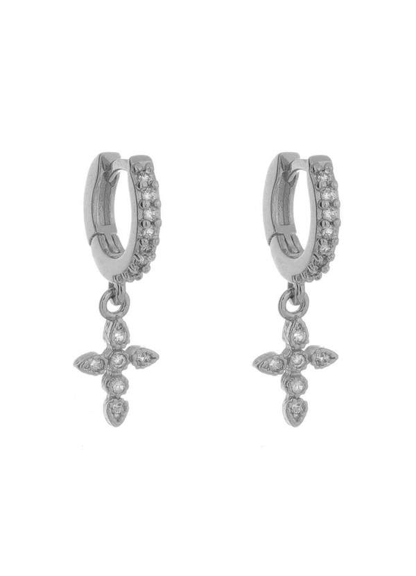 Piuka - Brinco Argolinha Zirconia e Cruz Folheado em Rodio Branco Prata